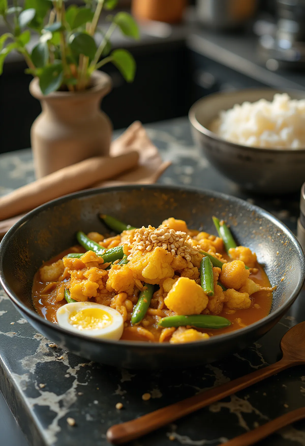 - Традиционно се сгъстява с брашно от препечен ориз, но малко фъстъчено масло също помага за текстурата.